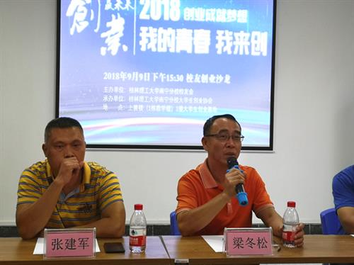 9月9日下午,分校首届校友创业交流沙龙在大学生创新创业就业基地成功举行。此次沙龙由分校校友会主办,分校大学生创新创业协会承办。分校党委副书记梁冬松,学校南宁校友会副会长张建军等近20名校友,分校近50名师生代表参加交流会。