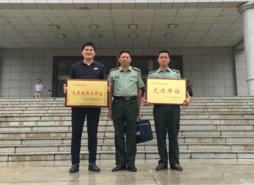 分校(左一为分校代表)荣获崇左市2017年度先进征兵工作站