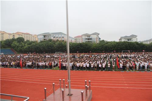 国旗护卫队队员迈着整齐矫健的步伐,护送鲜艳的五星红旗走向升旗台。当庄严的国歌声响起,全体师生行注目礼,五星红旗在学校体育场冉冉升起,瞬间点燃的爱国激情,转化成新学期开启新征程、迎接新挑战、实现新目标的强劲动力。分校学生工作部负责人发表国旗下的讲话。他向全体师生送上新学期的祝福和愿望,面对新学期、新形势、新目标、新任务,希望全体同学珍惜光阴,刻苦学习,热爱生活,胸怀理想,志存高远,为将来的发展打下良好基础。