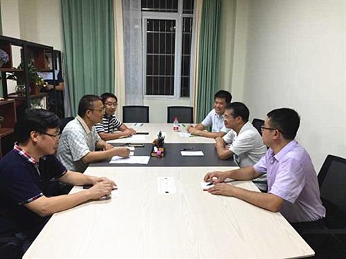 学校王敦球副校长(左排中)与扶绥县委罗彪书记(右排中)进行工作会谈