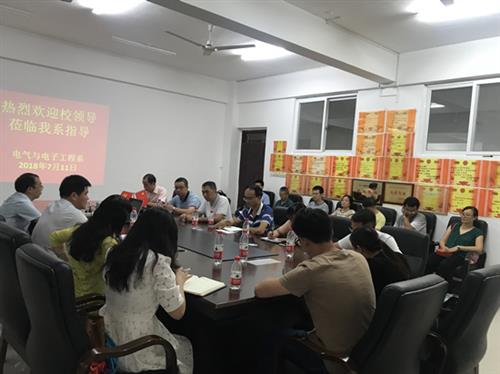 7月11日,学校校长助理、分校校长冯兵,分校副校长陈东莲在分校校长助理刘高鹏、教务管理部负责人陪同下到电气与电子工程系调研,在空港校区玉成楼208会议室进行座谈交流。电气系领导班子、各教研室主任及骨干教师参加座谈。