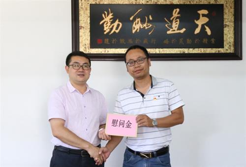 分校党委副书记黄润均(左)慰问困难党员