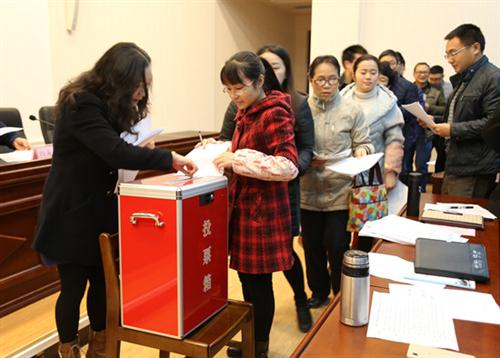 全体参会人员严格按照考核测评程序和要求,从思想素质、工作作风、工作能力、廉政建设、工作效果五个方面,以无记名方式对分校副职领导干部进行了测评打分,并将测评表当场投入投票箱。