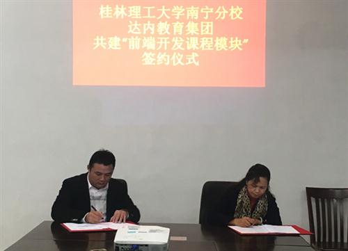 近日,分校副校长陈东莲代表分校在践行楼202会议室与广西南宁达内软件科技有限公司总经理陆显应签订共建“前端开发课程模块”合作协议。