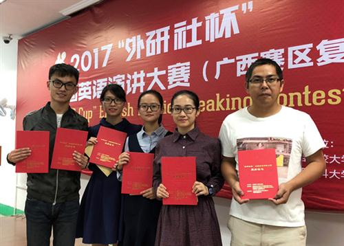 近日,2017年“外研社杯”全国英语演讲大赛广西赛区复赛在南宁举行。本次比赛作为广西区内水平最高、受众范围最广的英语演讲比赛之一,吸引了区内数十所本科及高职院校参加。分校学子廖敏惠在复赛中表现优异,斩获一等奖,黄晗宇、黄柳叶获三等奖。分校陈成、叶文强2位老师担任指导老师。
