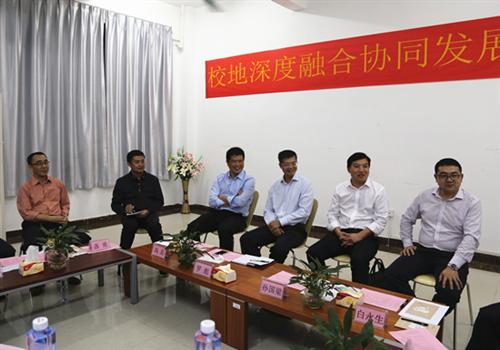 扶绥县委书记罗彪谈到,分校与扶绥县的发展需要双方充分发挥各自优势,进一步整合资源,释放人才、资源等创新要素的活力,增强校地协同创新能力,实现共赢发展。双方要通过沟通交流、科技合作、平台搭建、技术支持等多种形式,在人才培养、旅游开发、文化传承、环境保护、资源利用、成果转化等方面开展多领域、深层次的合作。他表示,针对分校的发展需求,扶绥县将在政策、资金及场地等方面给予大力支持,鼓励分校师生开拓思路,为校地深度融合协同发展建言献策,并就校地深度融合具体事宜给出了指导意见、提出了相关要求。