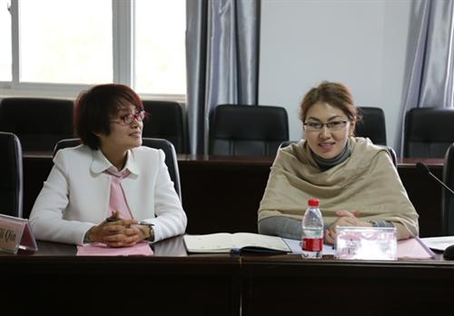 哈萨克斯坦欧亚教育集团执行总裁Ainur女士(右)在会上发言