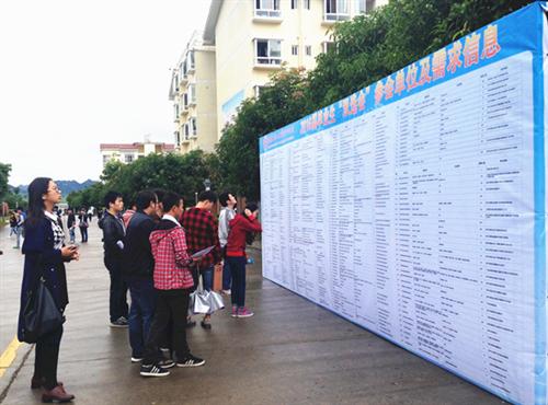 11月13日,分校2016届毕业生就业双向选择洽谈会在空港校区篮球场举行。江西铜业、南方有色金属集团、百色百矿集团、柳州钢铁(集团)等240多家区内外企事业用人单位云集我校招贤纳士,提供实习、就业岗位近万个。分校3365名2016届毕业生参加双选会。据统计,用人单位需求专业覆盖分校全部专业,专业对口率高,不少毕业生与用人单位在双选会上达成了就业意向。