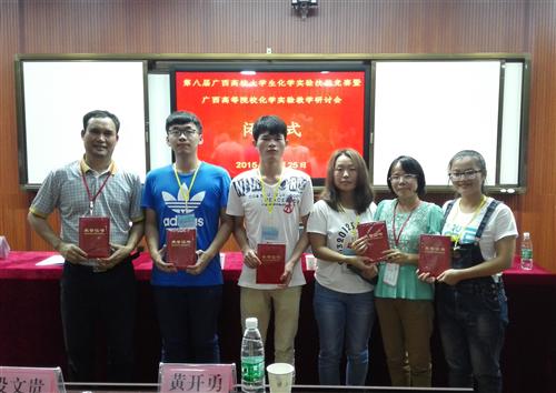 10月25日,由广西教育厅主办,广西大学承办的“第八届广西高校大学生化学实验技能竞赛”落下帷幕。经过三天紧张而激烈的角逐,分校冶金与资源工程系4名参赛同学取得优异成绩,获一等奖1名,二等奖1名,三等奖2名,黄润均老师喜获“优秀指导教师奖”。
