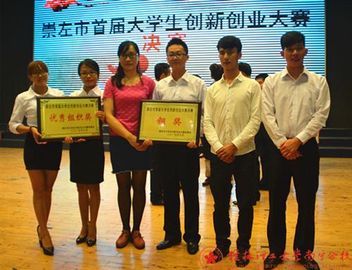 9月16日晚,崇左市首届大学生创新创业大赛决赛在广西民族师范学院音乐厅举行。经过激烈角逐,分校冶金与资源工程系韦丝、欧阳文杰、黄靖、黄翠娟和机械与控制工程系沈明贵五位同学组成的创业团队,凭借《校园咖啡厅》项目获得“崇左市首届大学生创新创业大赛决赛铜奖”。同时,我校也荣获了“优秀组织奖”。