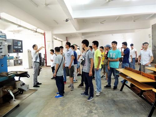 分校王文校长(左)与机械设计与制造专业15级2班新生沈金龙(右)亲切交谈