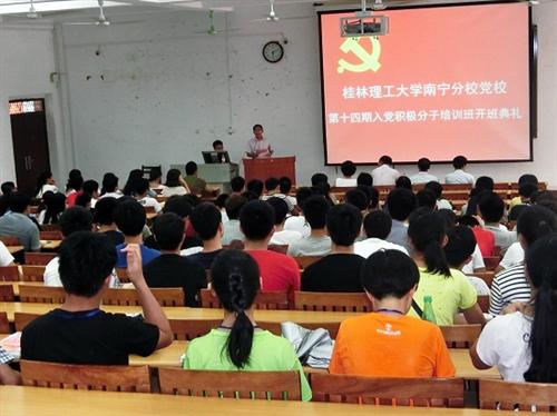 据悉,本次积极分子培训班共有学员495名,分为两个班,一班由机械与控制工程系、经济与管理系以及土木与测绘工程系319学员组成;二班由冶金与资源工程系、电气与电子工程系以及计算机应用系176名学员组成。培训课程共24个学时,培训将通过集中授课、自学、座谈讨论、观看爱国教育影片等形式进行。