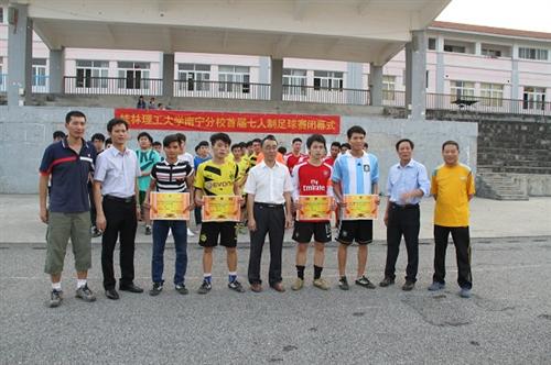 4月29日下午,分校首届七人制足球联赛在空港校区足球场落下帷幕,分校领导梁冬松出席了闭幕式并为获奖队伍及个人颁奖,冶金系摘得本次比赛桂冠。