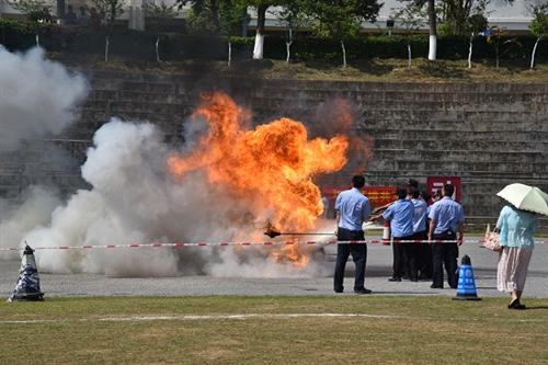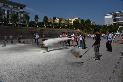 为进一步增强分校师生的消防安全意识,提高全体师生员工消防的“四个能力”,按照分校2015年“春季校园安全活动月”的工作安排,4月16日下午,分校协同扶绥县消防大队在空港校区足球场举办了消防灭火演练活动,分校各部门、星河物业公司以及各系师生代表约500人参加了此次活动。