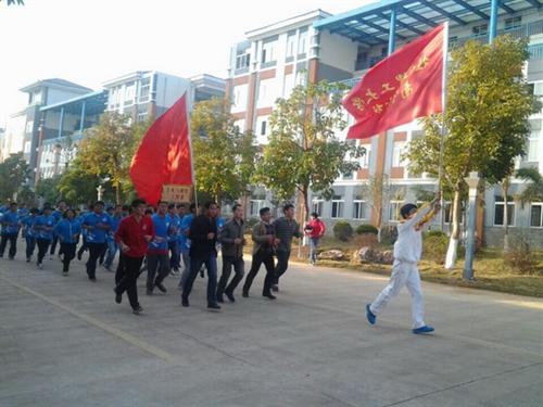 在环校园健康跑活动前,黄润均副书记简要回顾了2014年我校在教育教学、文化建设等方面取得的成果,希望广大师生在新的一年里以积极向上的精神风貌投入到学习工作中,共同推动学校各项事业再上新台阶。随后,梁锦叶副院长宣布环校园健康跑活动开始,广大师生以昂扬的姿态、矫健的步伐、响亮的口号、向上的风貌进行了环校园健康跑。