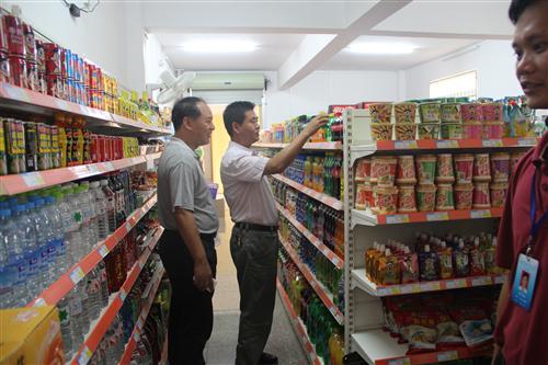 校长助理、高职学院王文院长,学院党委罗雪平书记认真检查校园内食品安全质量