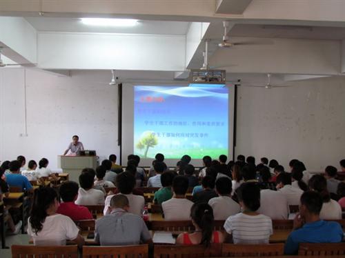 5月26日下午,学院2014年学生干部骨干培训班在空港校区启智楼201教室举办。学院党委常务副书记梁冬松为全体院级学生干部骨干作专题讲座。