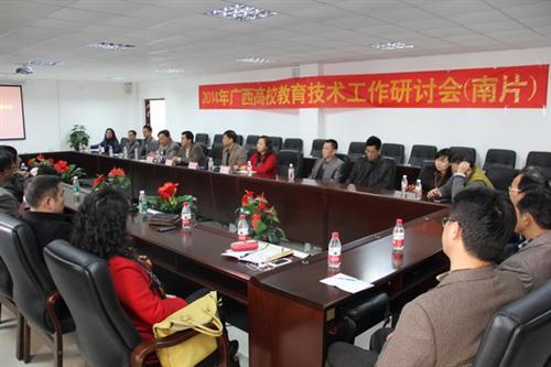 1月19日下午,由广西高等教育学会高校教育技术专业委员会主办的广西高校教育技术工作研讨会(南宁片区)在我院空港校区行政办公楼204会议室召开。南宁、崇左等地高校现代教育技术中心负责人以及第十三届广西高校教育教学软件应用大赛评委等参加了研讨会。会议由广西高校教育技术专业委员会常务理事冼伟铨教授主持。