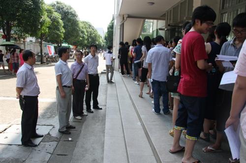 王文院长(左二)现场指导毕业生离校工作
