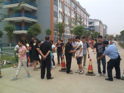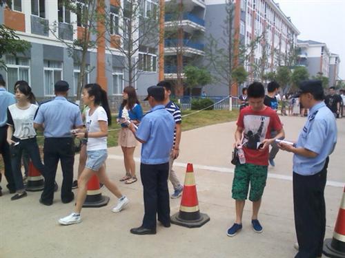 考务人员采用金属探测仪进行防作弊检测