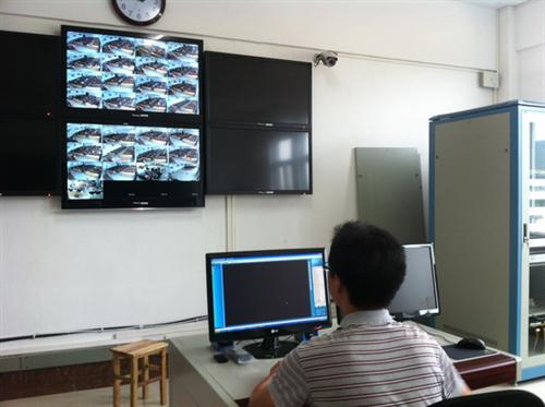 考务人员在视频监控室对考场情况进行监控