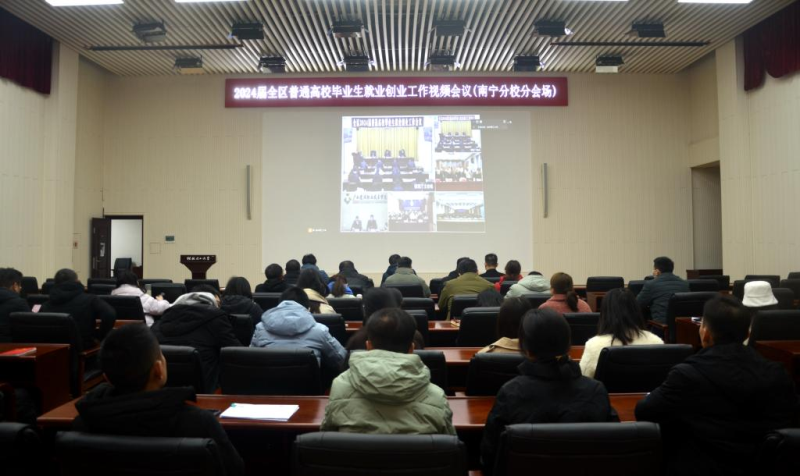 12月22日,自治区教育厅、自治区人力资源社会保障厅联合召开2024届全区普通高校毕业生就业创业工作视频会议,深入学习贯彻党的二十大精神,贯彻落实2024届全国普通高校毕业生就业创业工作视频会议精神,总结我区2023届高校毕业生就业创业工作,分析当前就业形势,全面部署我区2024届高校毕业生就业创业工作。自治区党委教育工委副书记,自治区教育厅党组书记、厅长刘友谊出席会议并讲话;自治区人力资源社会保障厅二级巡视员黄少坚讲话,自治区教育厅二级巡视员汪维主持会议。