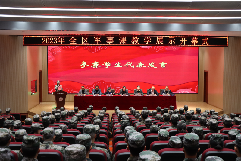 开幕仪式上,吴志强副书记代表学校致辞。他向来自全区23支参赛队的老师同学们以及所有关心和支持本次展示活动的领导、专家和朋友们表示热烈欢迎和衷心感谢。吴志强副书记指出,近年来,学校紧紧围绕教育部、自治区教育厅关于普通高校军事课程建设的发展目标,着力加强学校国防教育。成立军事理论教研室,积极开展军事理论教学改革研究与实践。与陆军特种作战学院合作,建立“军-校-班”三级联动机制,通过组建专兼职教师队伍,定期开展集中备课,邀请相关专家进行专题培训等方式,实现军人从部队进学校、进班级、进课堂,进一步提高我校教师军事理论授课能力和水平。吴志强副书记表示,本次军事课教学展示活动旨在以提升学生国防意识、爱国主义精神和综合军事素养为重点,通过军事技能训练和军事理论教学等内容展示,促进军事课教学的交流。
