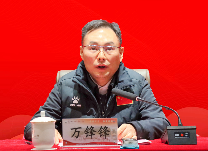 自治区教育厅体育卫生与艺术教育处处长、广西普通高等学校军事教学指导委员会秘书长万锋锋讲话