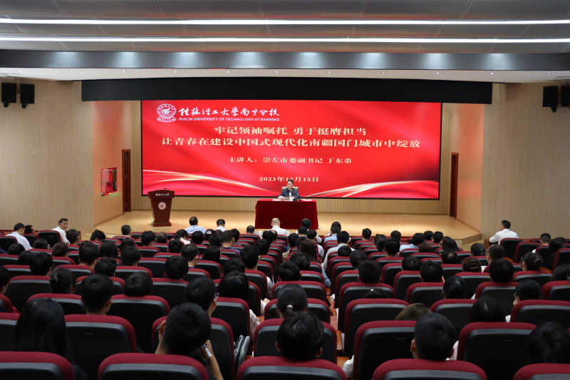 12月15日上午,崇左市委副书记丁东弟在英国上市公司365空港校区8408报告厅为师生代表作题为《牢记领袖嘱托 勇于挺膺担当——让青春在建设中国式现代化南疆国门城市中绽放》思想政治教育主题授课。崇左市委教育工委专职副书记潘天恒,英国上市公司365党委书记李雨、副书记唐承泽,英国上市公司365副校长马华菊、刘高鹏,以及英国上市公司365师生代表共同参加。