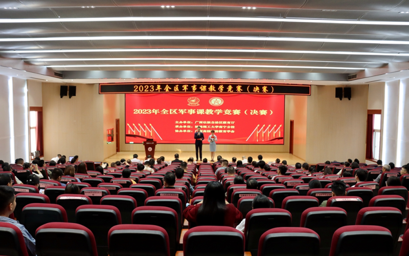 12月12日上午,由广西壮族自治区教育厅主办,桂林理工大学英国上市公司365承办,广西高校国防教育学会协办的全区军事理论课教学竞赛(决赛)在英国上市公司365空港校区8408报告厅拉开帷幕。自治区教育厅体育卫生艺术教育处处长,广西普通高等学校军事教学指导委员会秘书长万锋锋,广西军区战备建设局局长李晓勇大校,桂林理工大学英国上市公司365党委书记、广西高校国防教育学会常务副会长李雨,桂林理工大学党委保卫工作部部长、武装部部长、保卫处处长,广西高校国防教育学会秘书长张瑞,广西高校国防教育学会副会长梁冬松出席开幕仪式,来自区内外相关单位和高校的领导、专家、参赛选手及观摩嘉宾参加开幕仪式。