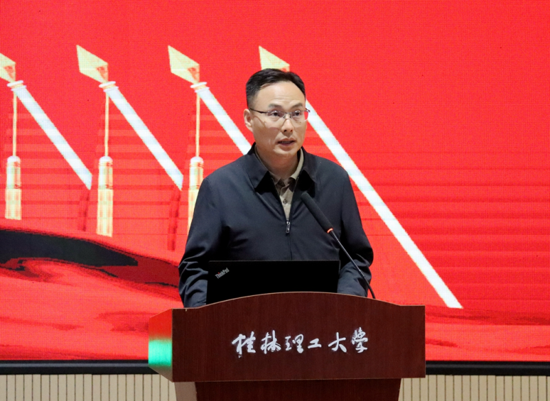 自治区教育厅体育卫生艺术教育处处长,广西普通高等学校军事教学指导委员会秘书长万锋锋讲话。他表示,本次军事课教学竞赛是对全区学校军事理论课教学质量的一次年度检验,对推进全区军事理论课教学工作起着承上启下,继往开来的重要作用,同时有效提升了军事理论课教师的任教能力,展现了教师们良好精神风貌和军事素养,规范了军事理论课教学,创新了教学方法,为培养未来部队需要的合格军人进行了理论性、实践性探索。他希望,全体军事教师对待教学要善于厚积薄发,不断学习,不断积淀,不断创新,发挥领头羊的作用,带动学校整体军事理论课教学水平快速提升,踏踏实实扎根本职工作,努力成为本专业的名师专家。