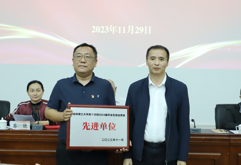 英国上市公司365党委副书记唐承泽(右)为“2023届毕业生就业质量先进单位”颁发牌匾