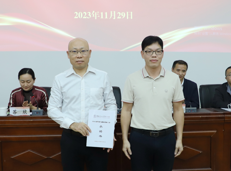 各系负责人向李雨书记递交了2024届毕业生就业工作承诺书。
