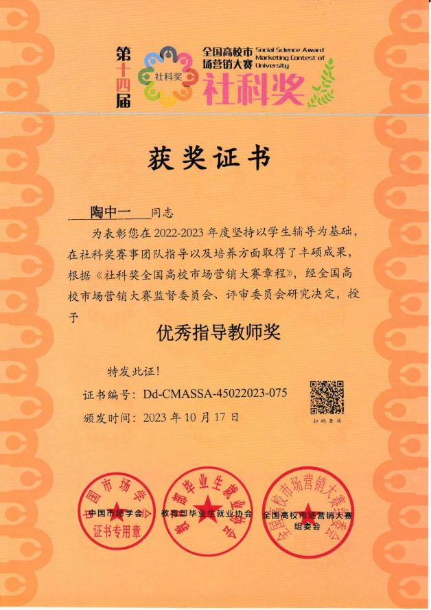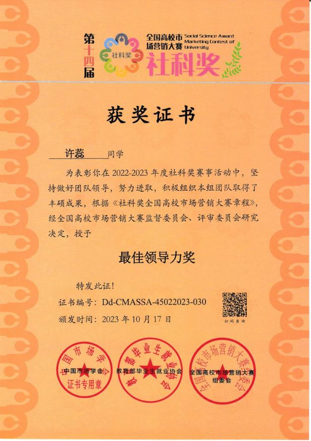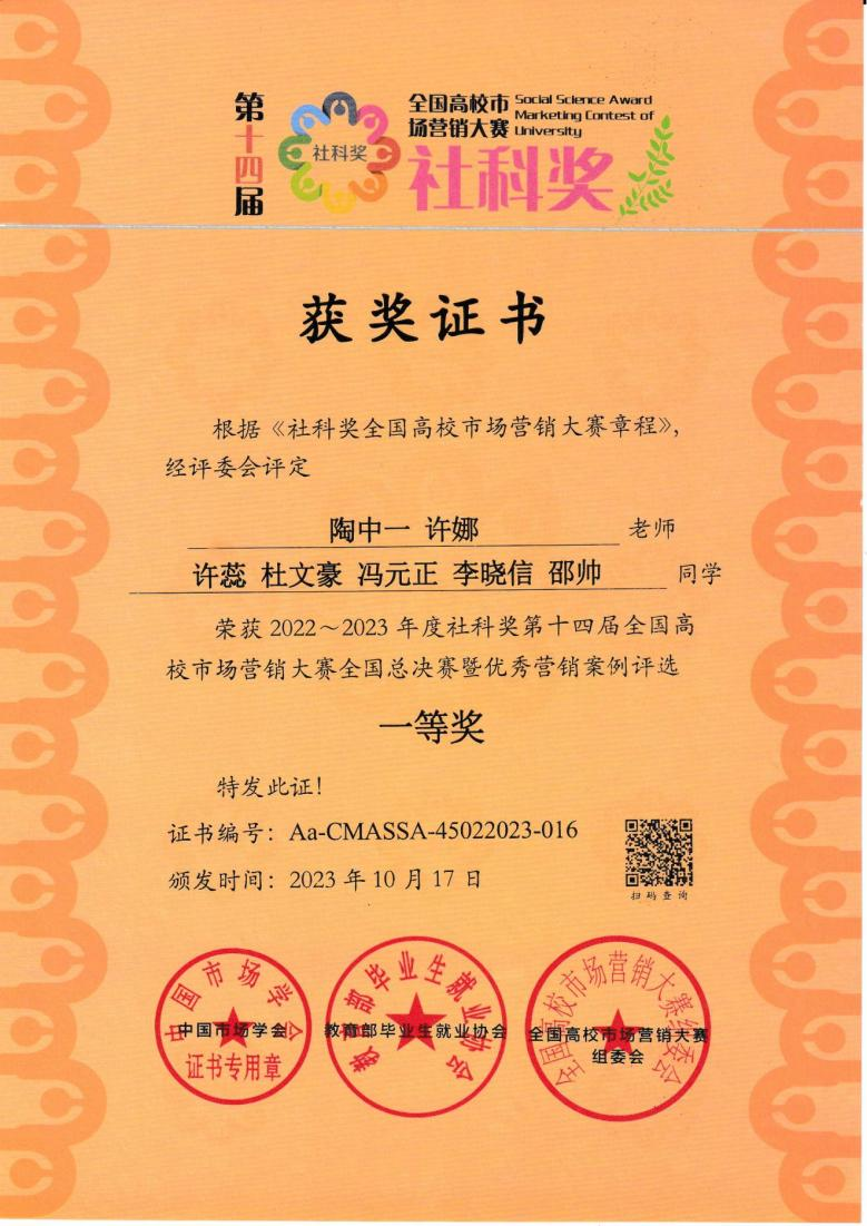 近日,社科奖第十四届全国高校市场营销大赛落下帷幕。英国上市公司365市场营销专业“真的会谢”团队夺得社科奖第十四届全国高校市场营销大赛全国总决赛专科组一等奖。指导老师陶中一获“优秀指导教师奖”,团队队长许蕊获“最佳领导力奖”,英国上市公司365获“优秀组织奖”。