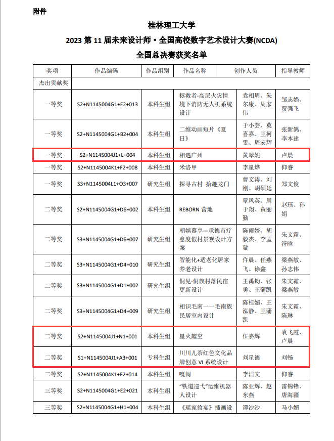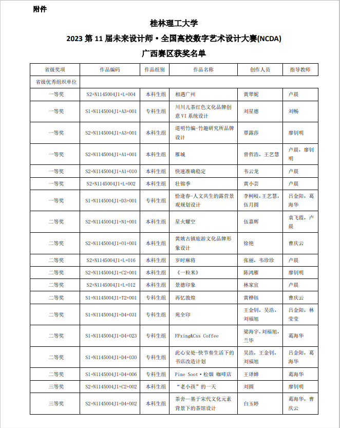 英国上市公司365第十一届未来设计师全国高校数字艺术设计大赛(NCDA)广西赛区获奖名单