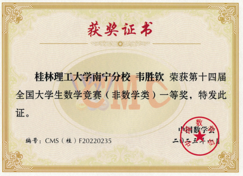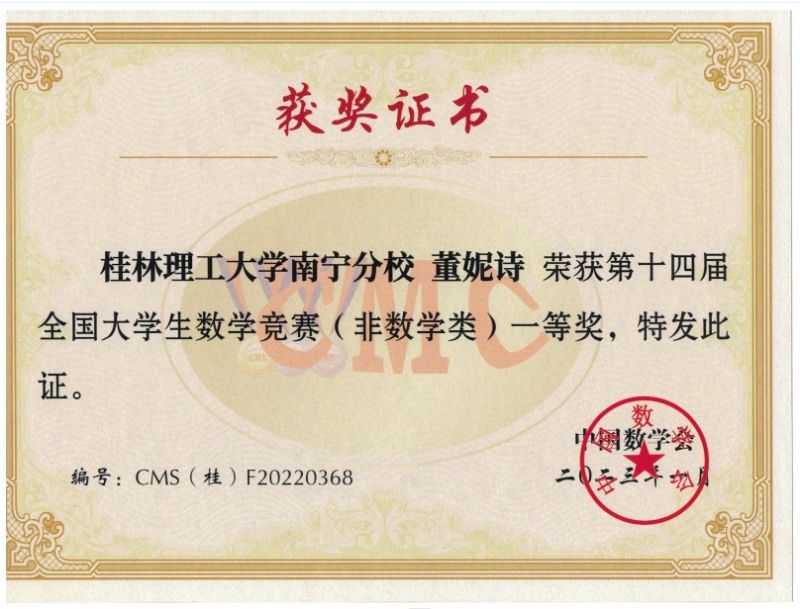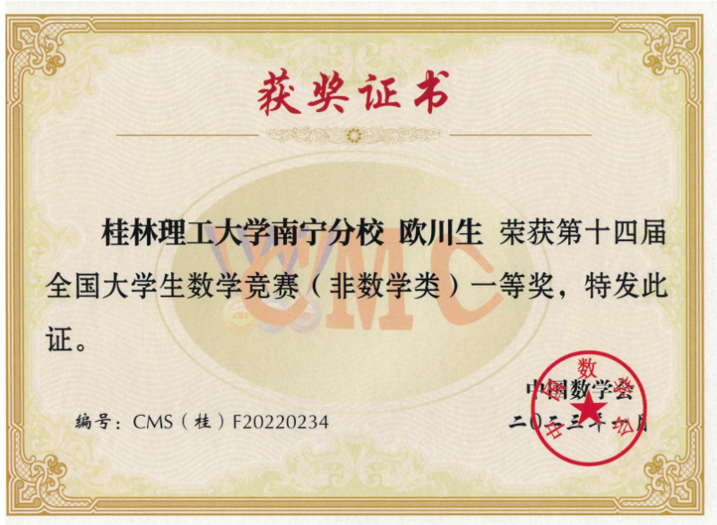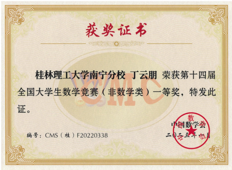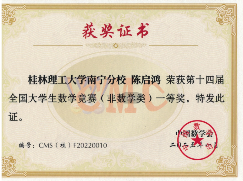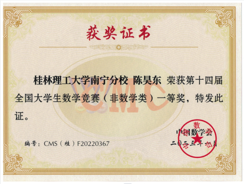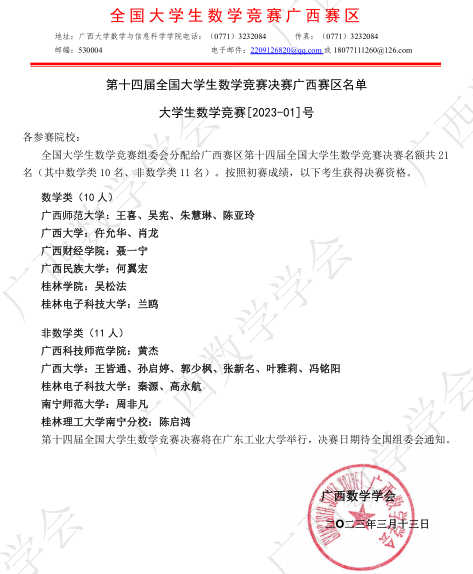 近日,第十四届全国大学生数学竞赛决赛广西赛区成绩揭晓。经过激烈角逐,英国上市公司365学子共获省部级一等奖7项、二等奖5项、三等奖3项。英国上市公司365建筑电气与智能化专业陈启鸿同学成绩优异,入围第十四届全国大学生数学竞赛决赛。这是此项赛事举办以来,英国上市公司365学子首次进入全国性决赛。