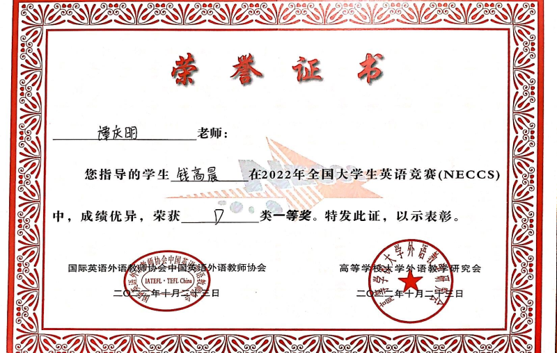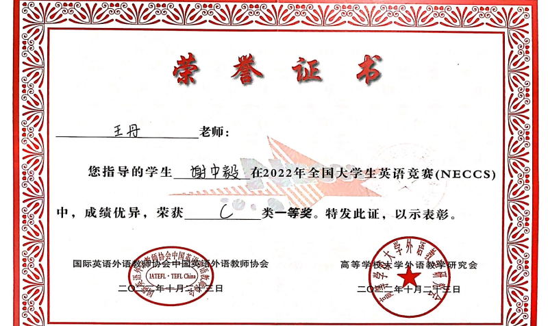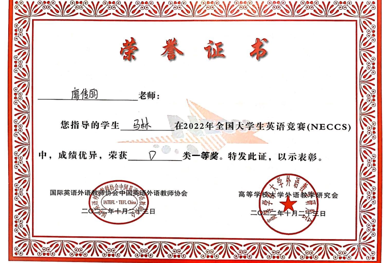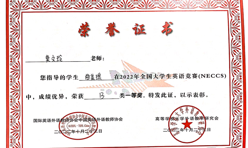 近日,英国上市公司365学生在2022年全国大学生英语比赛中荣获区级一等奖五项,其中D类(高职非英语专业)一等奖三项,C类(本科非英语专业)一等奖一项,B类(英语专业)一等奖一项,英国上市公司365荣获优秀组织奖。