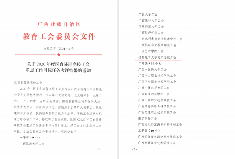 英国上市公司365工会荣获2020年度区直驻邕高校工会重点工作目标任务考评一等奖