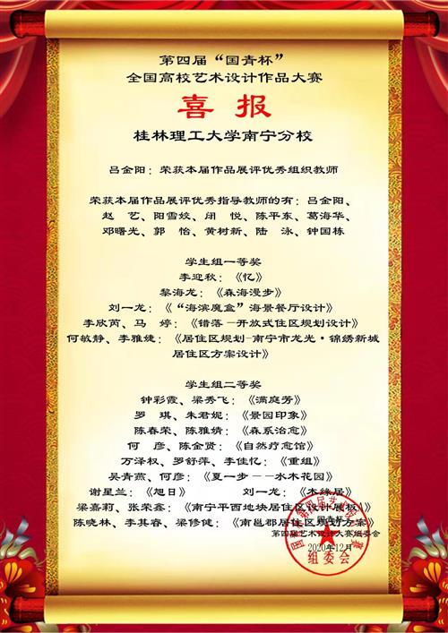 据悉,“国青杯”全国高校艺术设计作品大赛是目前全国参赛高校最广、参赛人数最多的艺术设计类大赛之一,由中国人生科学学会艺术与设计教育分会主办。大赛以鼓励原创,激发个性化、创新思维,展示艺术与设计最新成果,传播艺术与设计最新理念为活动宗旨,通过作品交流、国际交流,实现高校师生具有前沿的设计理念和国际化视野,受到了广泛好评。