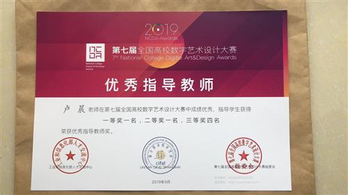 卢晨老师荣获“优秀指导教师”称号