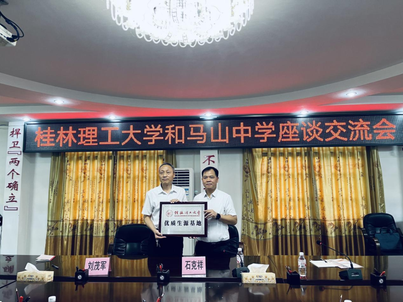 会后,双方共同签署了《桂林理工大学优质生源基地协议书》并进行“桂林理工大学优质生源基地”挂牌。