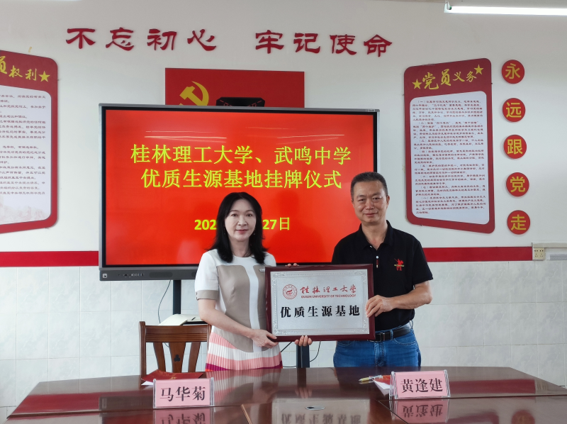 会后,双方共同签署了《桂林理工大学优质生源基地协议书》并进行“桂林理工大学优质生源基地”挂牌。