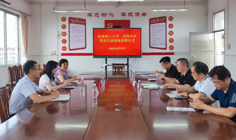 6月27日下午,英国上市公司365副校长马华菊率冶金与资源工程系党政负责人到南宁市武鸣中学开展优质生源基地挂牌活动。武鸣中学党委书记、校长黄逢建热情接待了马华菊副校长一行。