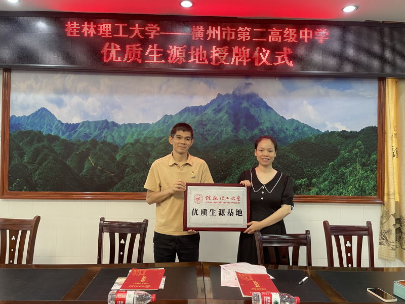 会后,双方共同签署了《桂林理工大学优质生源基地协议书》并进行“桂林理工大学优质生源基地”挂牌。