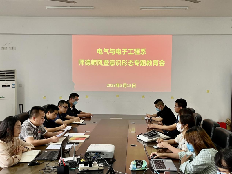 5月15日,电气与电子工程系在空港校区4208会议室召开师德师风教育暨意识形态专题教育会。系部领导班子及全体教职工参加会议,会议由系部党总支负责人主持。