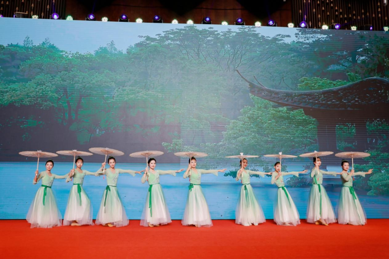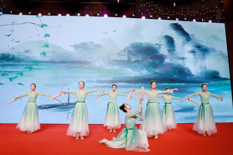 演出现场,英国上市公司365演员们身着彩衣闪亮登场,《民族啦啦操》节目伴随激情欢快的舞蹈拉开年会序幕,将年会氛围烘托得更为热烈。压轴节目《雨涧春行图》将油纸伞融入舞台表演,舞姿优美,音乐轻柔,古风古色,极具美感,赢得了在场观众的阵阵掌声。