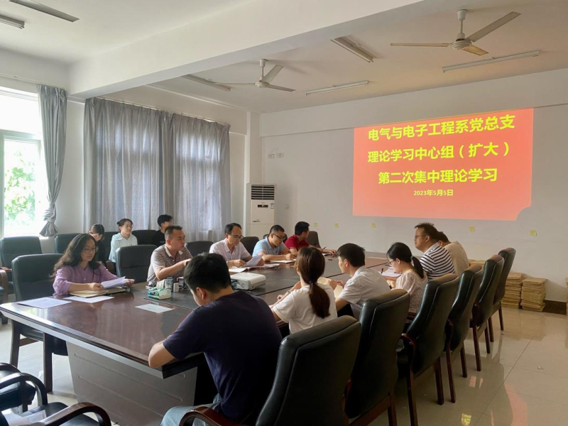 5月5日,电气与电子工程系党总支在空港校区4208会议室召开理论学习中心组(扩大)学习会。会议由系部党总支负责人主持,系部领导班子、党总支委员、支部委员、党务工作助理中心负责人参加会议。
