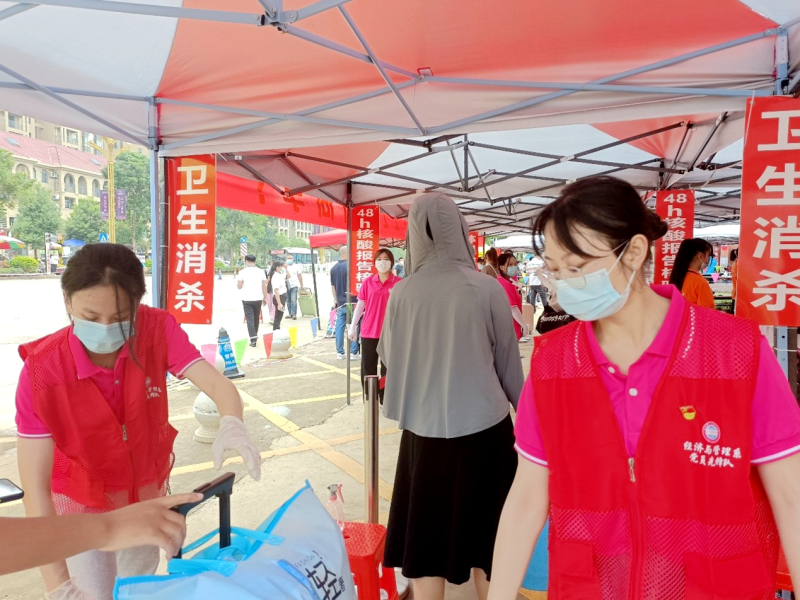 “红马甲”助力入校物品消杀