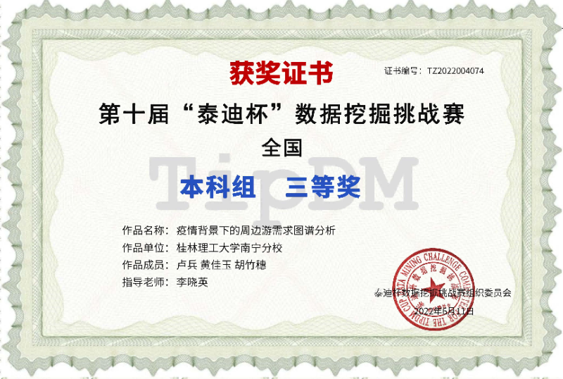 据悉,“泰迪杯”数据挖掘挑战赛由全国大学生数学建模竞赛组织委员会主办,广东泰迪智能科技股份有限公司承办,广西数学学会等十三家学会或研究所协办,旨在提高高校学生数据挖掘的应用和创新能力。