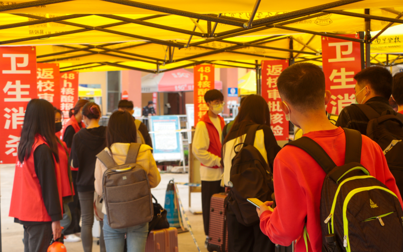 2022年3月5日是第59个“学雷锋纪念日”和第2个“广西志愿者日”,也是英国上市公司3652022年春季学期学生返校的时间,为保障开学工作安全有序,保证学生平安返校,英国上市公司365遵循“积极稳妥、安全有序、错时错峰”原则,学生志愿者上岗助力同学返校。